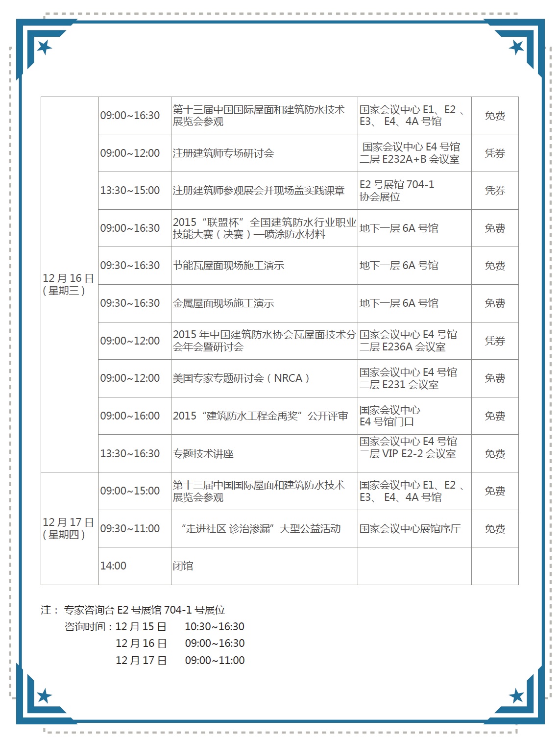第十三屆中國國際屋面和建筑防水技術(shù)展覽會日程