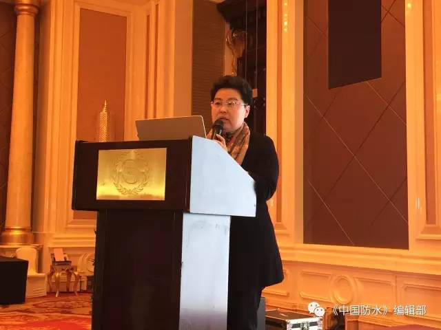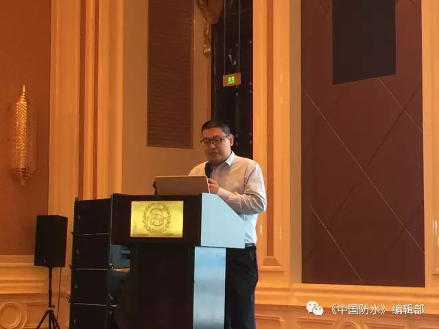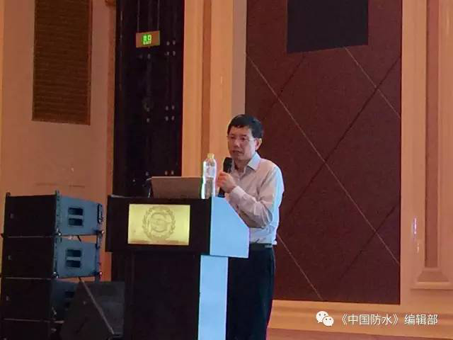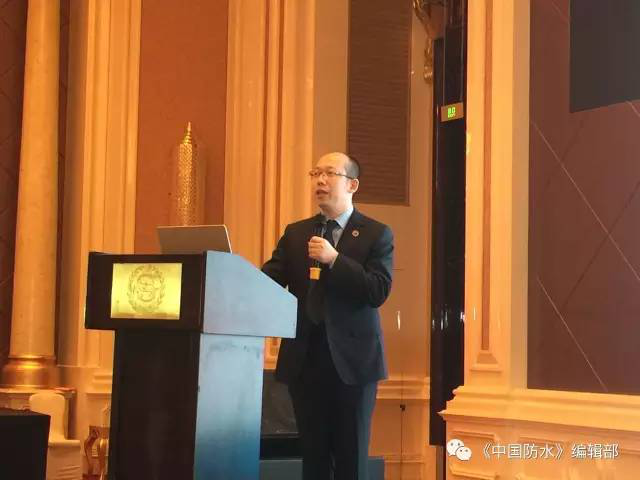 中國建材檢驗認證集團蘇州有限公司教授級高工、副總朱志遠在會上做了題為“建筑防水行業(yè)綠色發(fā)展的機遇與挑戰(zhàn)”的報告,他從國家綠色發(fā)展政策、國家環(huán)保政策、防水行業(yè)現狀、防水行業(yè)發(fā)展、綠色防水材料、防水行業(yè)的應對六個層面講述了建筑防水行業(yè)綠色發(fā)展的機遇和挑戰(zhàn)。他談到防水行業(yè)存在著行業(yè)集中度低、大量中小企業(yè)技術水平差距大等問題。針對這些問題,防水行業(yè)應及時調整產業(yè)結構,轉型升級,提高產業(yè)集中度,加大產品設計的創(chuàng)新力度,優(yōu)化環(huán)保裝置,發(fā)展施工技術,完善維護技術,引領標準規(guī)范。