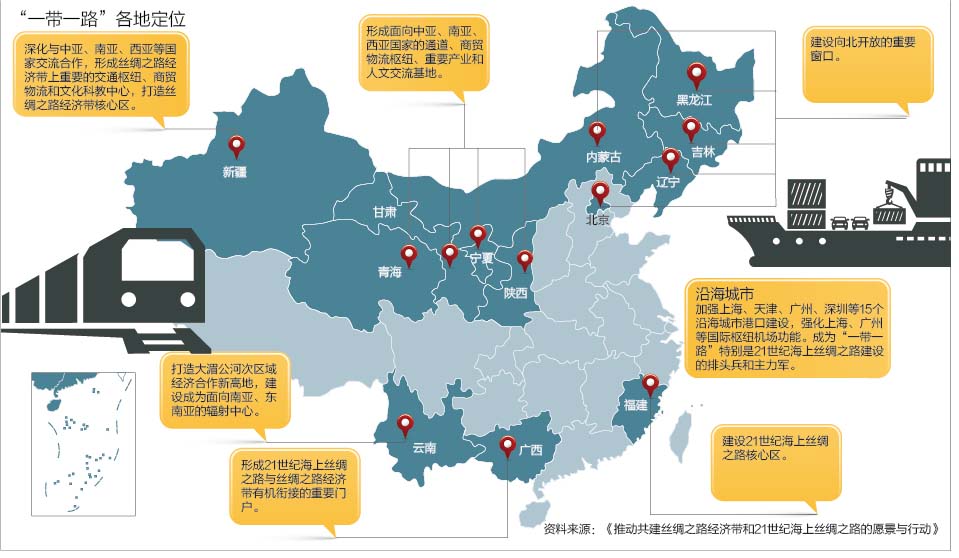 從國(guó)家發(fā)展改革委獲悉,目前,全國(guó)31個(gè)省區(qū)市和新疆生產(chǎn)建設(shè)兵團(tuán)“一帶一路”建設(shè)實(shí)施方案銜接工作已基本完成,正陸續(xù)出臺(tái)。根據(jù)方案,各地將在多個(gè)領(lǐng)域推動(dòng)重點(diǎn)工作和重大合作項(xiàng)目。