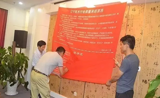 2014年8月12日,在遼寧省“加強建筑防水行業(yè)質(zhì)量建設(shè),促進防水卷材產(chǎn)品質(zhì)量提升座談會”上,遼寧省建筑防水質(zhì)量誠信企業(yè)聯(lián)盟17家成員單位代表簽署了質(zhì)量承諾宣言。