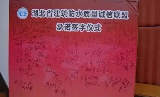 2015年2月3日,“湖北省建筑防水質(zhì)量誠信聯(lián)盟”在湖北省建筑防水行業(yè)2014年會上正式宣告成立。32家建筑防水材料生產(chǎn)及建筑防水施工企業(yè)代表在簽名墻上鄭重簽字,作出了不生產(chǎn)、不銷售、不使用非標產(chǎn)品和假冒偽劣產(chǎn)品以及堅持守法經(jīng)營、秉持誠信為本、實施全面質(zhì)量管理的莊嚴承諾。