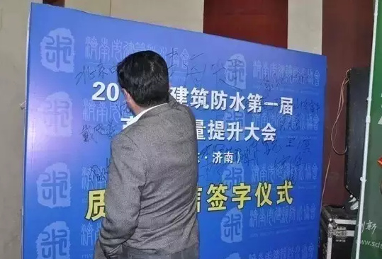 2015年4月18日,由16家骨干防水企業(yè)聯(lián)合發(fā)起的“濟南市防水產(chǎn)品質(zhì)量提升聯(lián)盟”在濟南市建筑防水協(xié)會第一屆產(chǎn)品質(zhì)量提升大會上正式成立。聯(lián)盟企業(yè)代表在簽名墻上鄭重簽字,作出了依法從業(yè)、誠信為本的承諾。