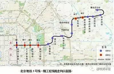 ??北京地鐵3號線一期工程西起東四十條站(含起點至東四十條站區(qū)間)至終點全長21.975km,全部為地下線。2020年建成。設(shè)計最高時速80km/h.標(biāo)準(zhǔn)A型車,8輛編組。未來3號線,可能東延至通州。