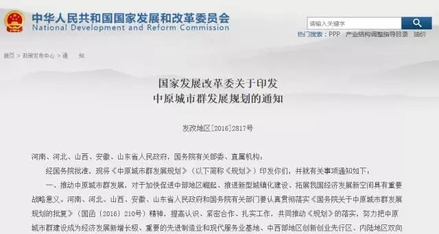 2017年1月5日,國家發(fā)改委印發(fā)通知,明確了中原城市群發(fā)展規(guī)劃的重大工程項目。項目以“鐵公基”為主,在未來5年內(nèi)逐漸開工。