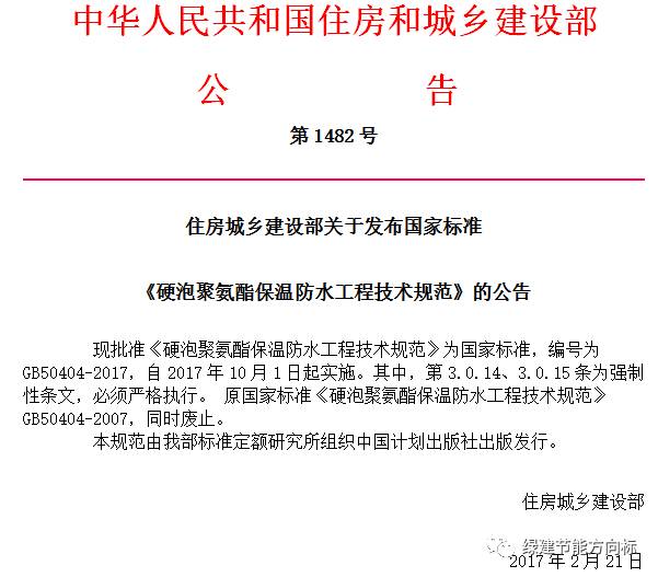 2017新版《硬泡聚氨酯保溫防水工程技術(shù)規(guī)范》已經(jīng)發(fā)布,新規(guī)定的精彩內(nèi)容如下: