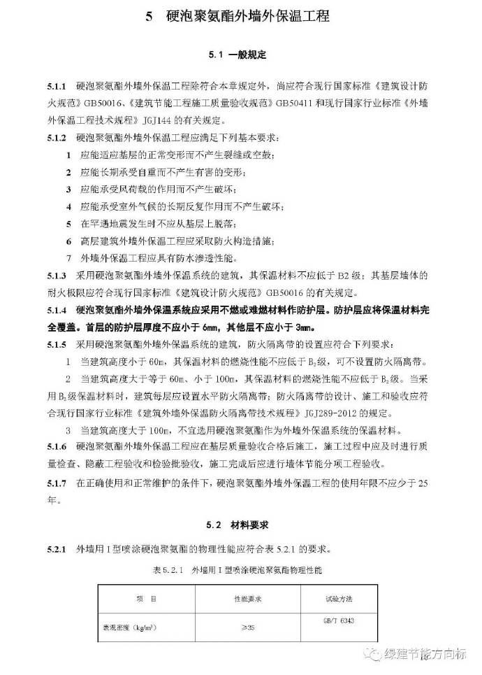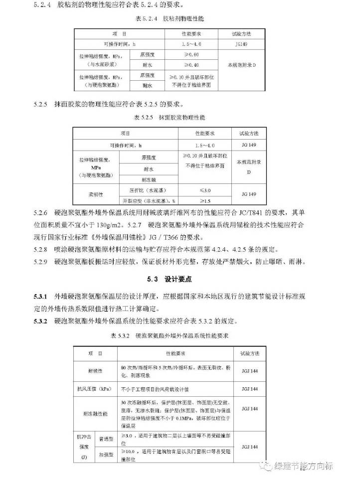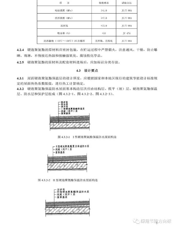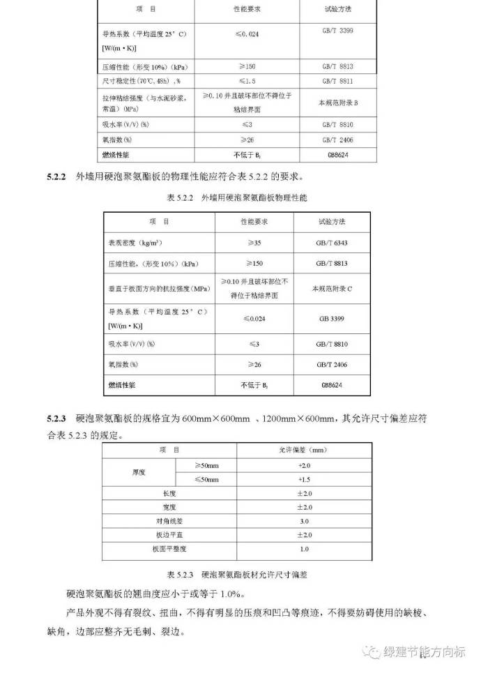 硬泡聚氨酯板材的物理性能指標(biāo)見本規(guī)程第5.2.2條規(guī)定,宜用于屋面和外墻保溫層。