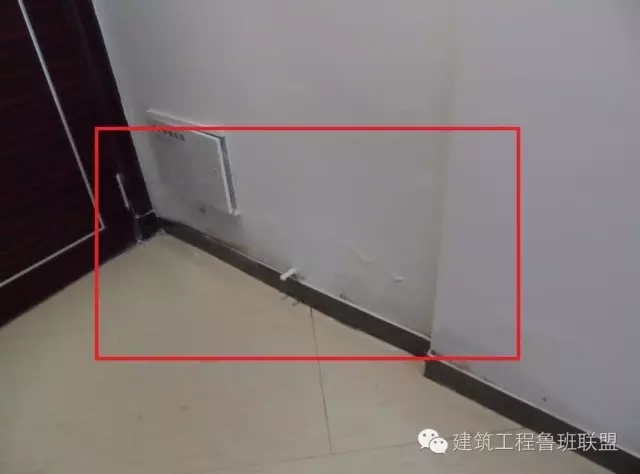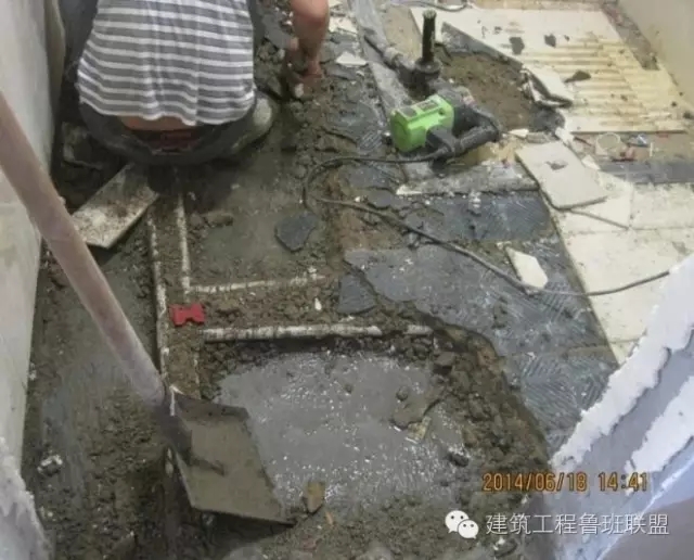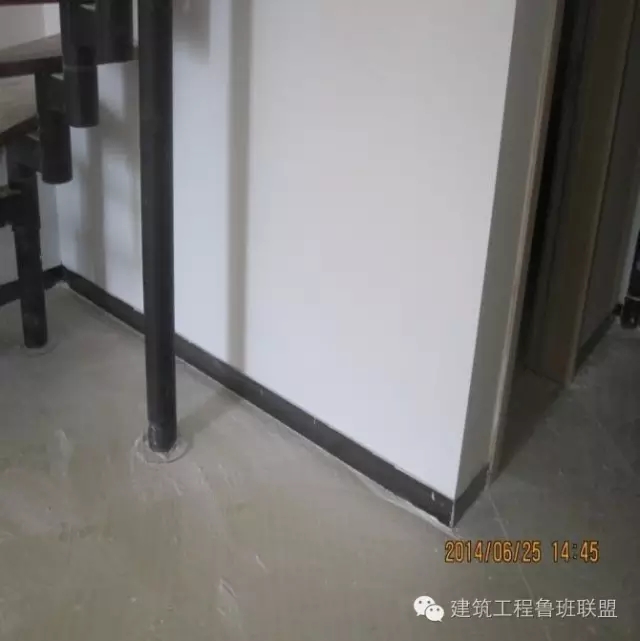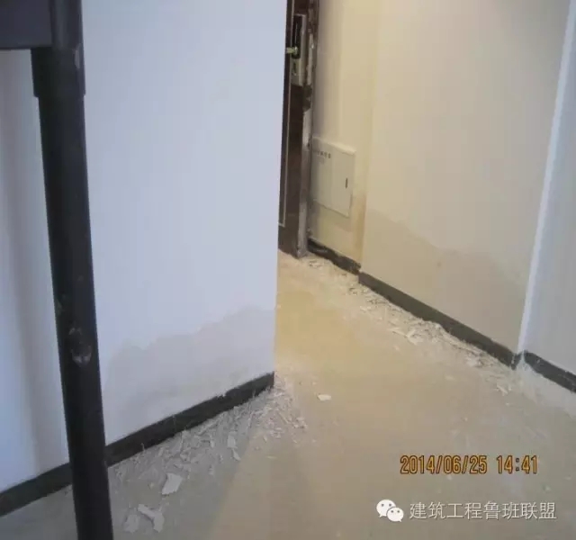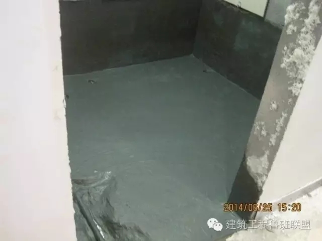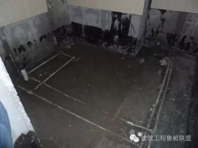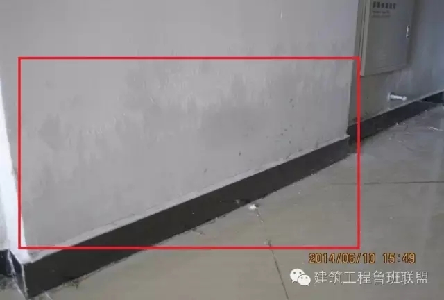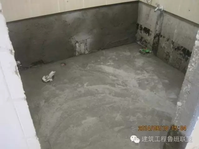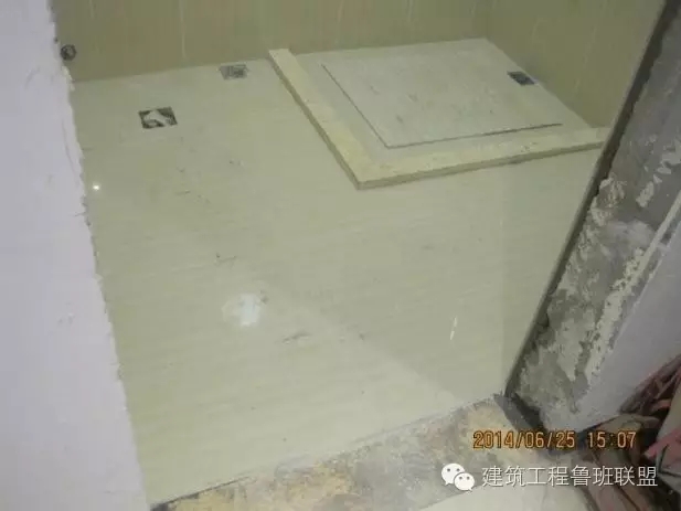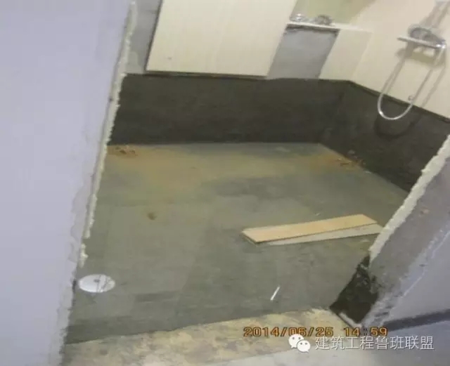 2. 生間翻邊為后做,翻邊與結(jié)構(gòu)層不嚴(yán)密、有加雜、峰窩,沉箱和瓷磚干鋪下面的積水就往四周沿墻上返潮。
