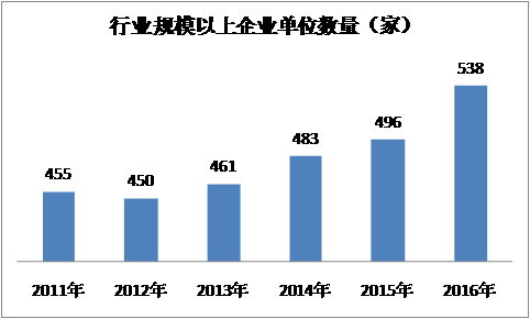 隨著行業(yè)的發(fā)展,規(guī)模以上企業(yè)家數(shù)逐年增多,5年內(nèi)規(guī)模以上企業(yè)增加了83家。