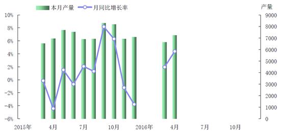 2016年1-4月,規(guī)模以上企業(yè)的瀝青類防水卷材產(chǎn)量為22836萬(wàn)平方米 ,比去年同期增長(zhǎng)1.8%,增幅上升近2個(gè)百分點(diǎn)。