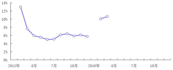 圖6 2016年1-3月規(guī)模以上企業(yè)累計(jì)銷售利潤(rùn)率(%)