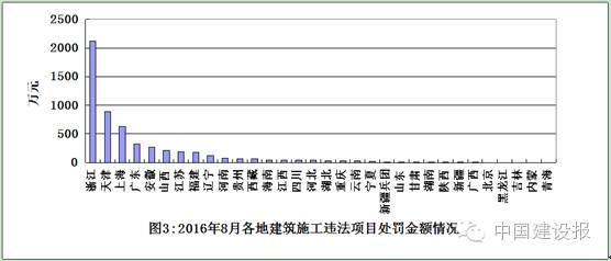 從各地查處的違法工程項(xiàng)目數(shù)量看,浙江、安徽、上海3省(市)查處力度較大,分別查處項(xiàng)目131個(gè)、61個(gè)、48個(gè)(見圖1)。