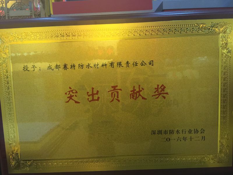 經(jīng)深圳市防水協(xié)會(huì)辦公室會(huì)議研究決定,授予成都賽特防水材料有限責(zé)任公司被授予“突出貢獻(xiàn)獎(jiǎng)”“突出貢獻(xiàn)獎(jiǎng)”獎(jiǎng)項(xiàng)。此獎(jiǎng)項(xiàng)是依據(jù)在提高防水工程質(zhì)量、規(guī)范防水市場(chǎng)中有突出貢獻(xiàn)的防水企業(yè)頒發(fā)。