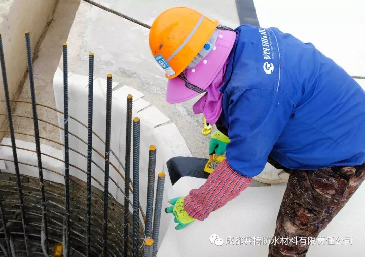 材料優(yōu)點:潮濕基面可施工,與后澆混凝土結(jié)構(gòu)體直接粘接,達到皮膚式防水,杜絕了竄水通道。施工簡便,冷粘環(huán)保,使用壽命可達70年。