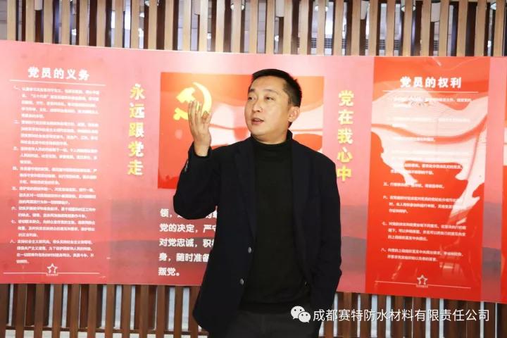 在賽特防水總經(jīng)理史文俊及彭州市委組織部主任陳亮引領(lǐng)下,此次參會(huì)人員一行參觀了賽特防水黨建文化展廳。賽特防水始終以紅色黨支部為引領(lǐng),助力企業(yè)踐行“工匠精神”,實(shí)現(xiàn)綠色發(fā)展,打造“百年企業(yè)、隱形冠軍”。全體參觀人員都深刻地感受到了賽特防水在黨建工作建設(shè)中取得的驕人成績,紛紛表示要以此次參觀學(xué)習(xí)活動(dòng)為契機(jī),加強(qiáng)自身的黨性修養(yǎng),將企業(yè)黨支部的優(yōu)點(diǎn)有機(jī)融合到今后的工作當(dāng)中。
