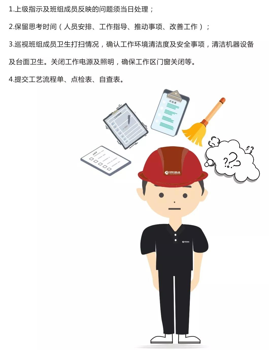 班組長的日常工作,主要是督導(dǎo)性工作,要經(jīng)常檢查部門內(nèi)的狀況,并依狀況采取必要的措施。