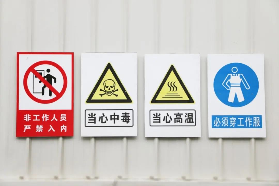 在易燃、易爆、有毒有害等危險場所的醒目位置設(shè)置符合國標(biāo)的各類安全標(biāo)志;在重大危險源現(xiàn)場設(shè)置明顯的安全警示標(biāo)志;在廠內(nèi)道路,可以設(shè)置限速、限高、禁行等標(biāo)志; 在可能產(chǎn)生嚴(yán)重職業(yè)危害作業(yè)崗位的醒目位置,設(shè)置告知牌、預(yù)防及應(yīng)急處理措施等標(biāo)志;在工廠檢修、施工、吊裝等作業(yè)現(xiàn)場設(shè)置安全標(biāo)志。
